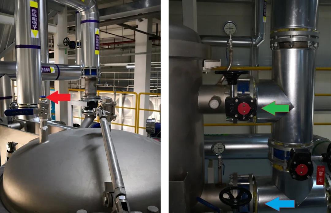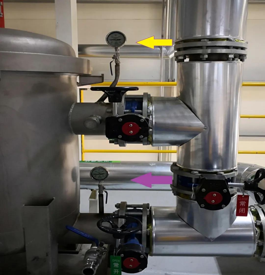 • 检查设备进口(黄色箭头)压力表和出口(紫色箭头)压力表的压差区间在0.5~1公斤,准备更换大香蕉视频网站。